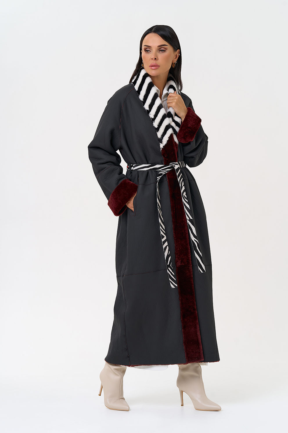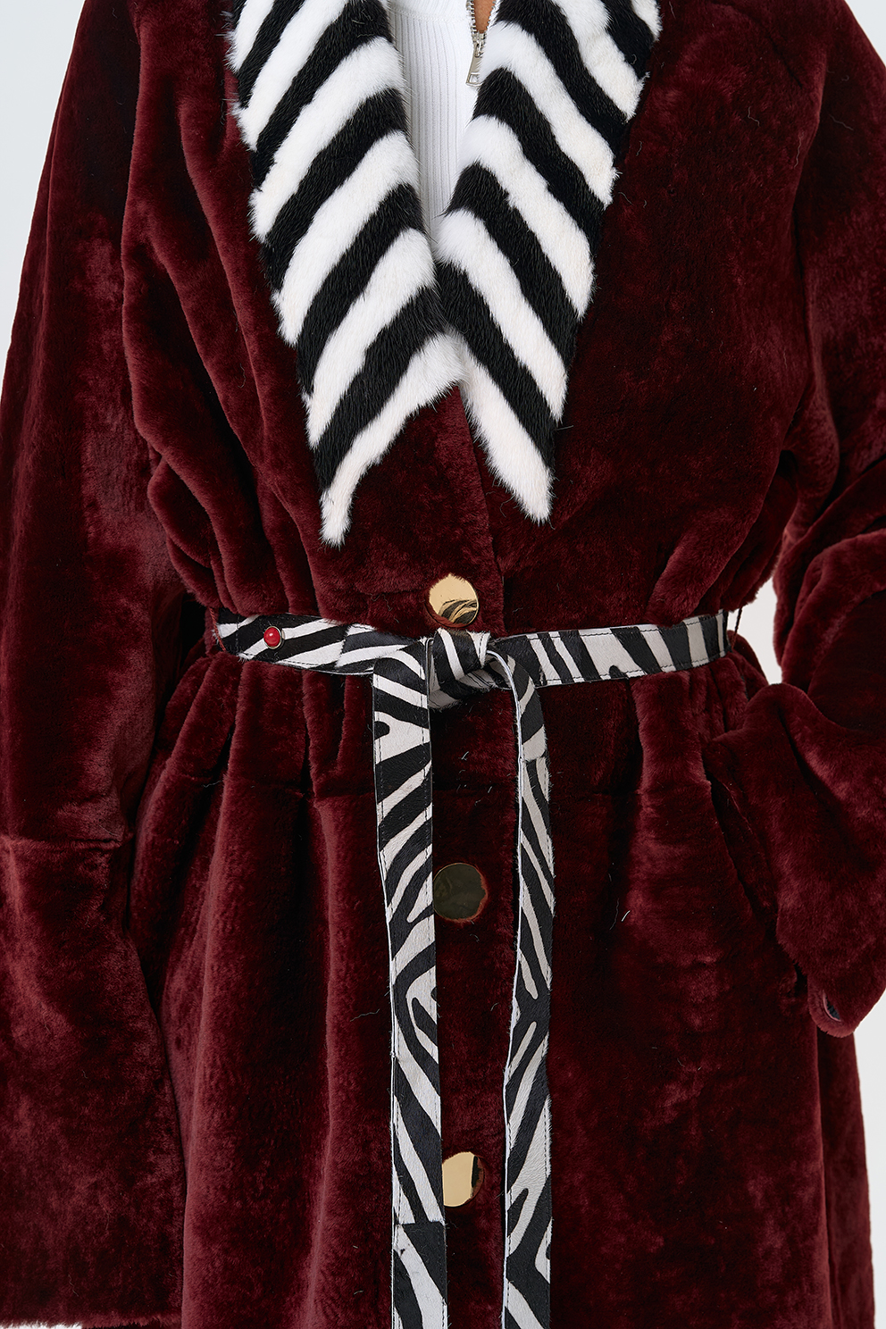 Вид застежки - кнопки, пояс из меха теленка Cavallino